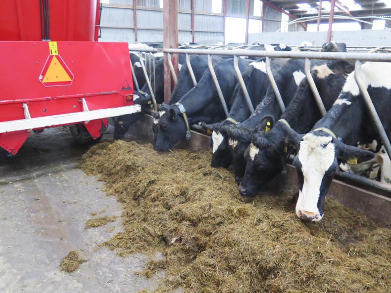 Cows being fed third-cut silage and 3kg of blend on the Corbett farm.