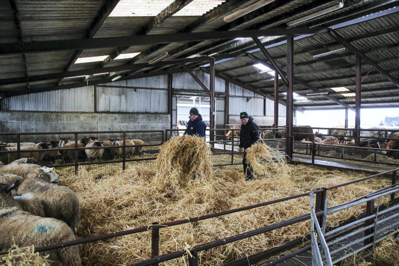 Eoin and Padraig Moran bedding ewes. \ Odhran Ducie