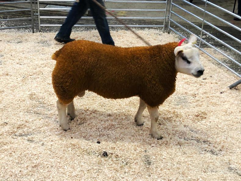 This February-born Texel ram by Turoe Yogi from Ciaran Hegarty, Donegal, sold for €580.