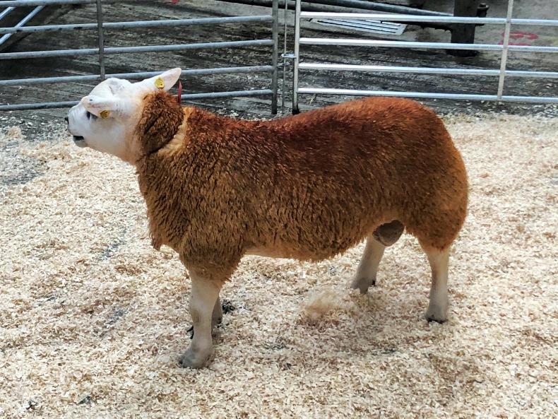 This February 2020-born Texel ram lamb by Haymount Crowdpuller from McHugh brothers, Monaghan, sold for €500