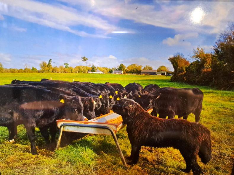 Teddy the Newfoundland enjoying feeding time with the calves in Co Roscommon / submitted by Ann Macken