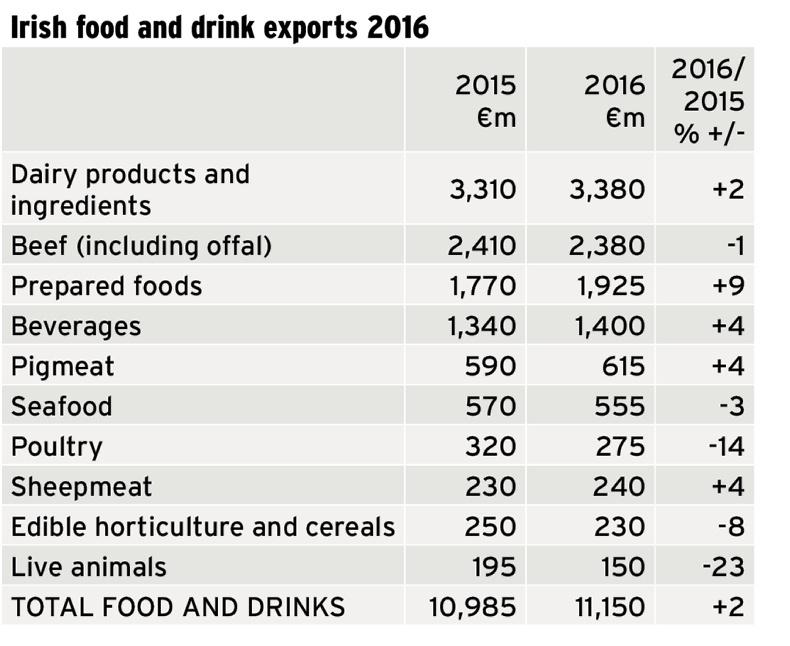 Exports to continental Europe grew by 9% to 240,000t but again the higher volume of beef was dampened by lower prices. The continental European market trade amounted to €1bn.