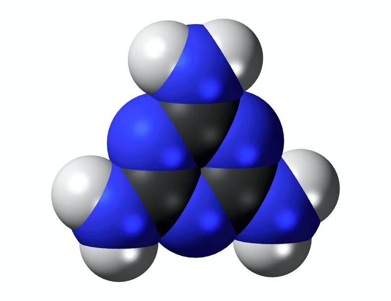 Melamine, which contains 66% nitrogen by mass, is an organic chemical widely used in the manufacture of plastics, adhesives, dishware and whiteboards.