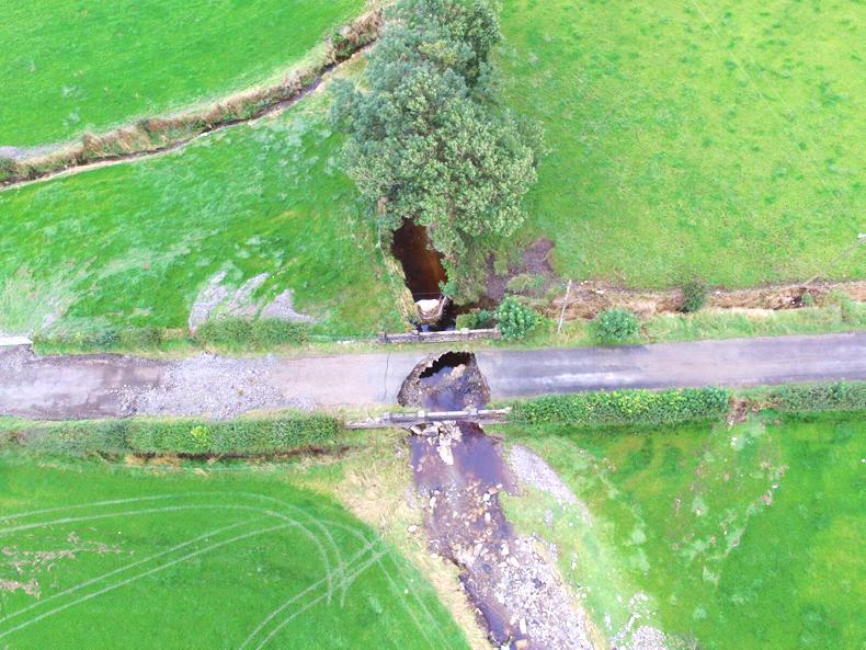Donegal dairy farmer Brook Wylie has been cut off from public roads since Tuesday night when flash floods swept away two bridges close to his 160ac farm.