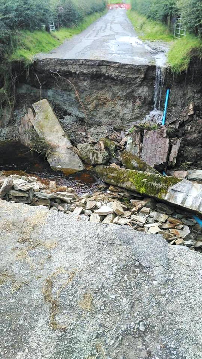 One of the two bridges destroyed by flash flooding on the Wylie farm in Donegal.