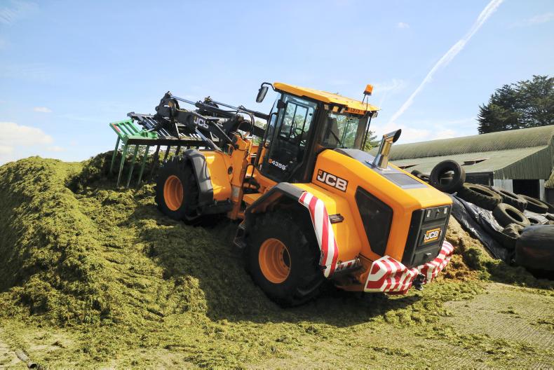 With a machine of this size and a 12ft fork, power was never an issue at any stage on the clamp. Unlike other machines, the JCB employs limited slip differentials (LSD) on both axles. The reason for this, says the manufacturer, is LSDs are better suited to the twisty nature of farms, providing more grip more of the time, unlike a 100 per cent locking differential which is only any use in a straight line. And to a large extent we can see their logic especially in the confines of a silage clamp. It also means you can forget about having to manage your traction and just leave the machine to do its stuff. Traction certainly was not a problem on the silage clamp. Another unique feature of the JCB compared to the others is the use of parallel lift arms as opposed to Z-bar linkage.