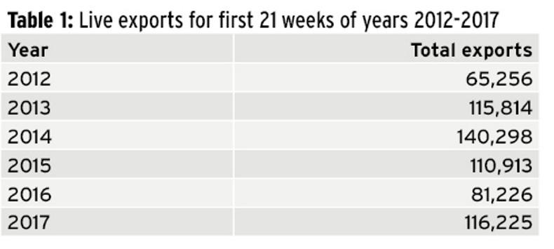 This compares very favourably with the same period in 2016, with exports running 34,961 head or 43% above last year’s levels.