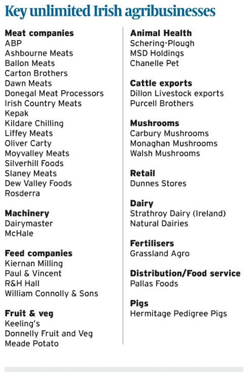 These include some of the well-known family dynasties in Irish agribusiness such as Larry Goodman’s, ABP group, the Browne and Queally-owned Dawn Meats group, and the Keating-controlled Kepak group. These three companies have a combined turnover close to €5bn.