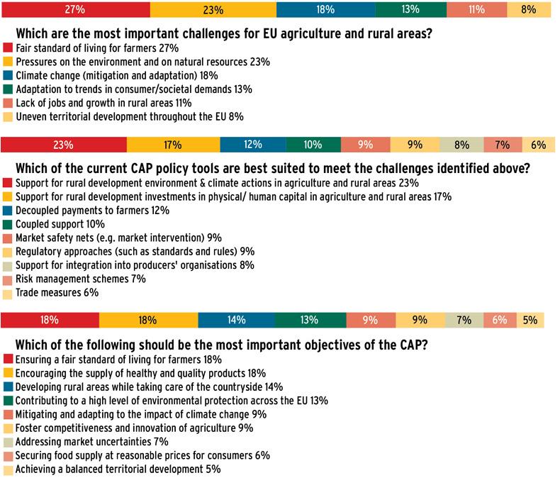 The consultation also opened suggestions for new CAP objectives, and large numbers of respondents mentioned more sustainable agricultural practices ranging from organic farming to better animal welfare. Jobs in agriculture and in the wider rural economy, as well as market stability, also emerged as priorities.