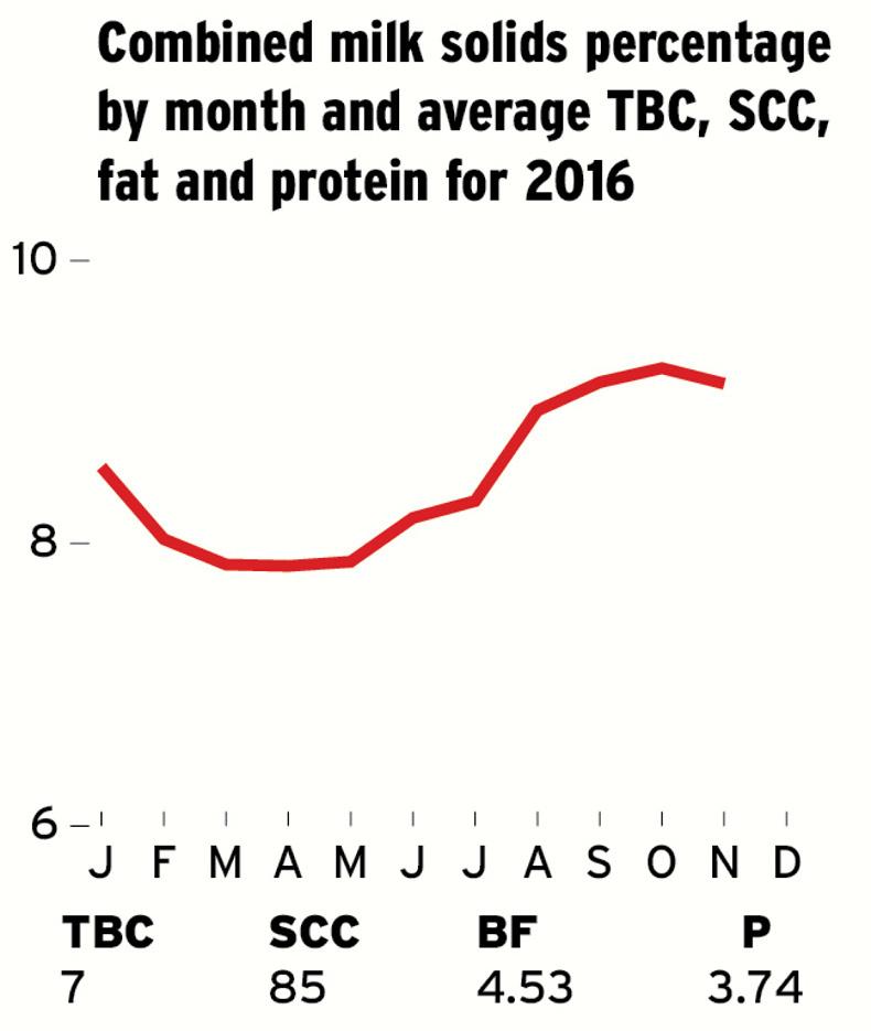 Michael said: “The absolute perfect cow is the half and half. Crossbreeding for us all started from a trip to New Zealand in 2007 – 10 years ago. At the time, we were feeding 6kg of meal in early lactation and getting big volumes but not enough solids. They had much smaller cows, fed on grass only, and were getting better milk solids than us.”