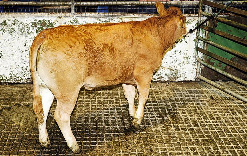 This good-quality February 2017-born Limousin bull weighing 395kg sold for €1,050 (€2.66/kg).