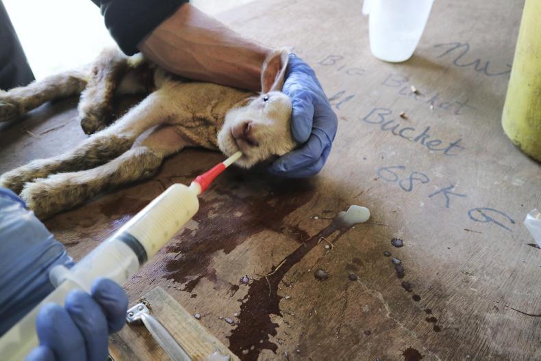 The optimum treatment route here is getting a rapid source of energy into the lamb, which is best achieved by administering a glucose injection into the lamb’s abdominal cavity (stomach). Veterinary advice is to administer 10ml of a 20% glucose injection per kg bodyweight (50ml for a 5kg lamb). The solution should be warmed to body temperature and if diluting, add recently boiled water that has been allowed to cool or sterile water. The injection site is one inch out and one inch down on the right hand side of the lamb’s navel with the solution administered into the abdominal cavity (inside the skin) and not the gut of the animal. This can be achieved by inserting the needle downwards at a 45-degree angle. The lamb should only be warmed once the injection has been administered, avoiding overheating. This should bring the lamb back to a state of being able to suckle or stomach tubed. Remember, a ewe’s colostrum is the optimum source with the advice to use alternative colostrum sources, where possible, as a top-up supply.