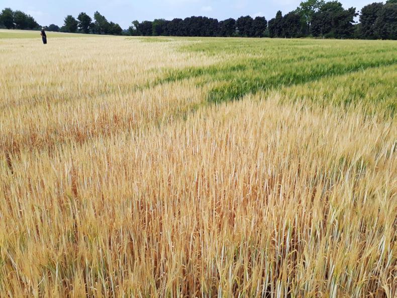 One of Andrew's Limona spring barley fields. The stark difference between soil types is very evident this year.