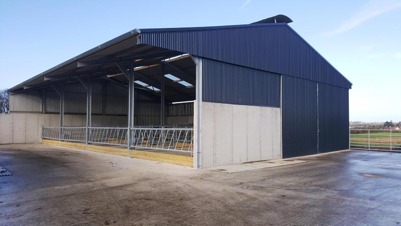 Slats were supplied by Harrington Concrete. The total cost per cow in the shed is €875. However, as it is an autumn-calving herd the shed also carries 32 calves over the winter meaning that the shed works out at €437/animal. As most of the calves will not spend a second winter on the farm then additional housing is not required for them. If it was a spring-calving herd and weanlings were kept, then it would mean an extra three pens would be needed to hold them.