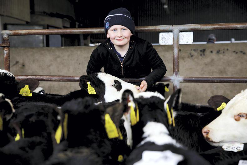 Johnny Spollen training newborn calves on the artificial drinker on the farm of Bernard Heavey, near Tullamore, Co Offaly. At this stage, over 75% of the herd has calved, so it is all hands on deck to ensure that stock are well fed. \ Philip Doyle