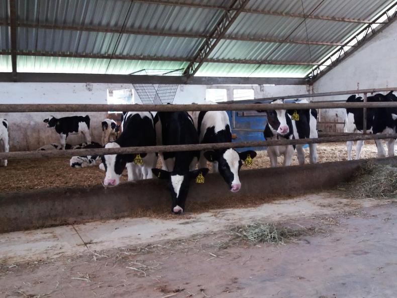Fresh calves are fed colostrum from a freezer and then put on to cows' milk for four days.