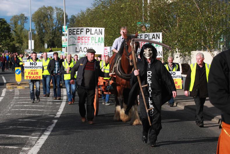 Members of the Beef Plan Movement marched in protest against the prices paid for beef in Ballinasloe, Co Galway, on Thursday evening, ahead of the Irish Farmers Journal Beef Summit.