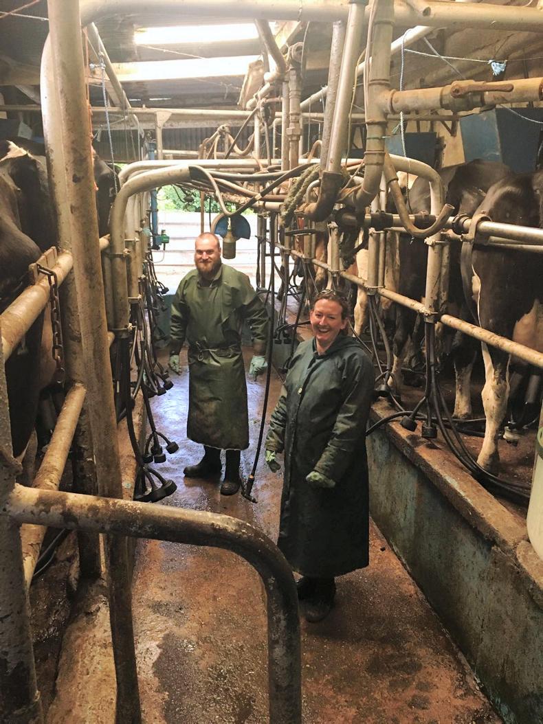 Seosamh and his wife Susan, milking on his uncles farm in Clais Mhór.