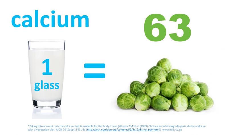 250 ml milk has the same calcium as 63 Brussels sprouts or 900g spinach