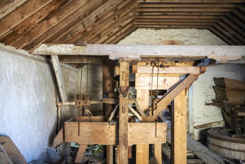 Close by is Lynam’s Mill. The interior is fully intact to this day. It is as if the men just walked out in 1962 after the last bag of corn was milled. Frozen in time. Thirty years earlier, in 1932 the world Eucharist Congress was held in Dublin. Money was tight and transport was scarce. Tom Lynam from the mill had a flat-bed Bedford delivery truck and the men from Grillagh and Derryadd loaded up for the epic trip (no health and safety in those times). Joe McDermott, despite being only 16, was the driver.