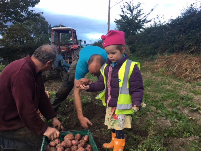 Thinking back to our little potato harvest in mid-September; the sun was shining, the weather was warm, threatening rain, but still blissful. \ Hannah Bolger