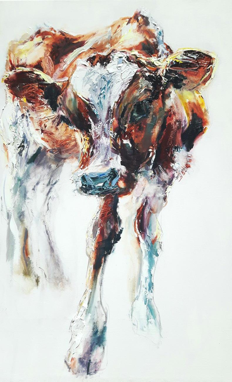 Una O’Grady was born in north Belfast and her art focused predominantly on the people and landscape of her home city until she found calf-style inspiration in Waterford which expanded her range from urban to rural.