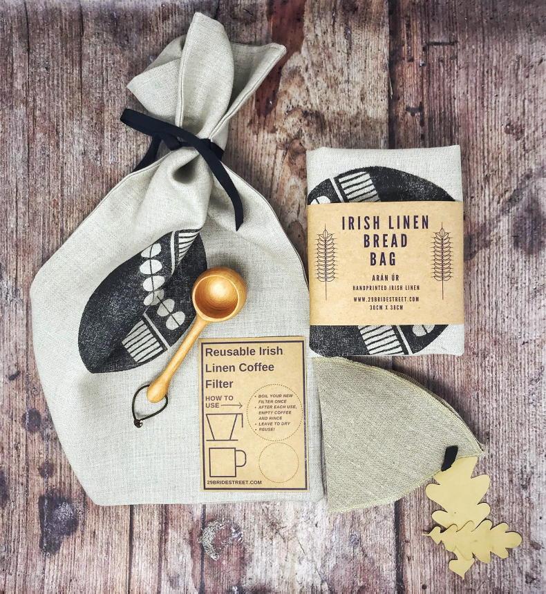 The sustainable Kitchen gift box (pic 7) is a perfect way to move into a more waste-free way of living. In your gift box you will find an Irish Linen bread storage bag that’s hand block printed, a reusable linen coffee filter and a beautifully hand-turned wooden coffee scoop by Eoghan Ledbetter. This product is designed and produced in Ireland using materials sourced in Ireland. €58 |