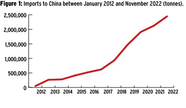 It is a market more than twice the size of the second largest importer, the US, which imported 1.1m tonnes in 2022 (USDA).