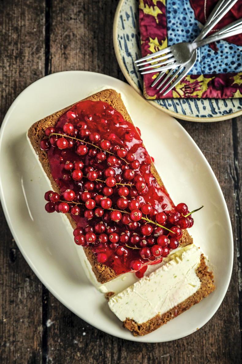 This lime semifreddo, or ‘half cold’, cheesecake is a light refreshing dessert. It can be made up to three months in advance and frozen, then just left to thaw for half an hour before you need it. I have often mentioned Killowen yoghurt, but they also do one of the nicest cream cheeses I have tasted. You could also try using frozen forest berries.