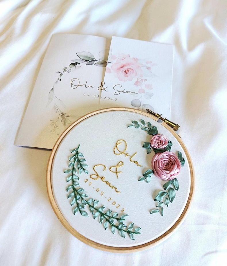 Most of my business at the moment is actually my embroidery kits. The way I run it is I have a subscription and you get kits sent out to you every second month. I also take on commission work for wedding presents and Christening gifts.