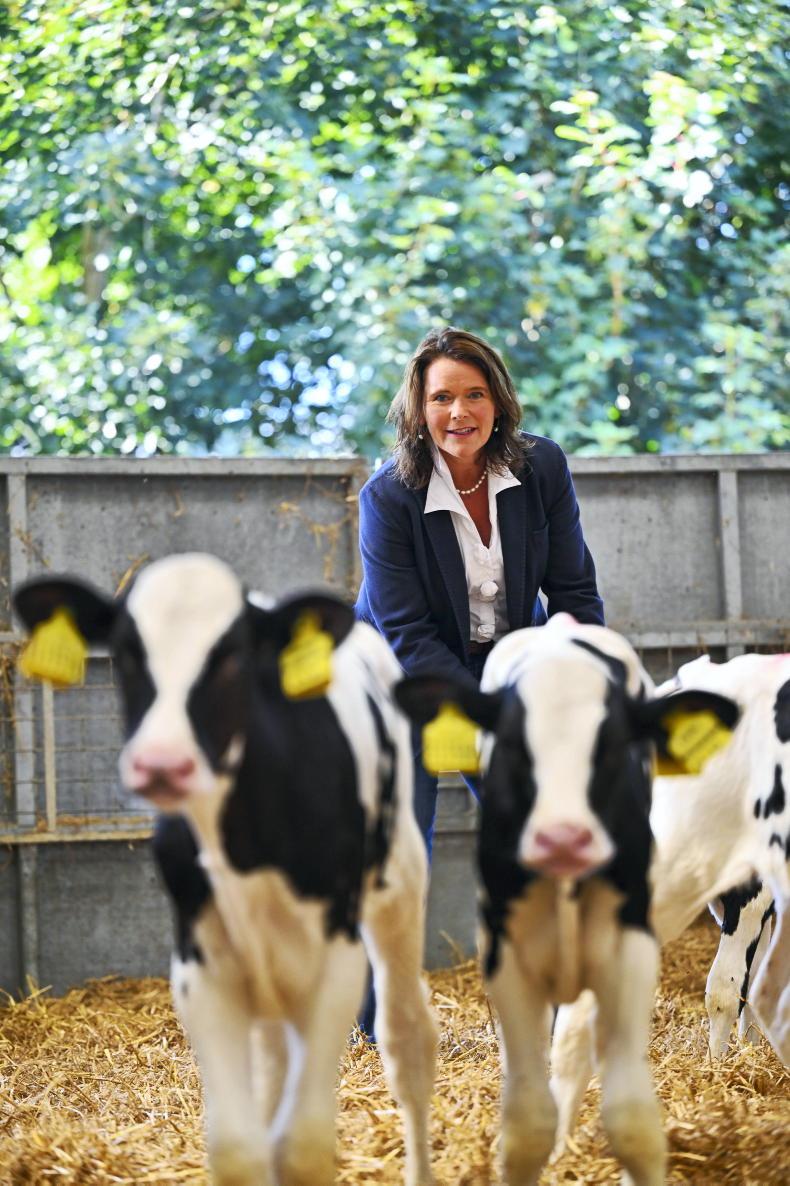 Award-winning independent family succession facilitator Heather Wildman from Saviour Associates checking the calves on the family dairy farm in Scotland.