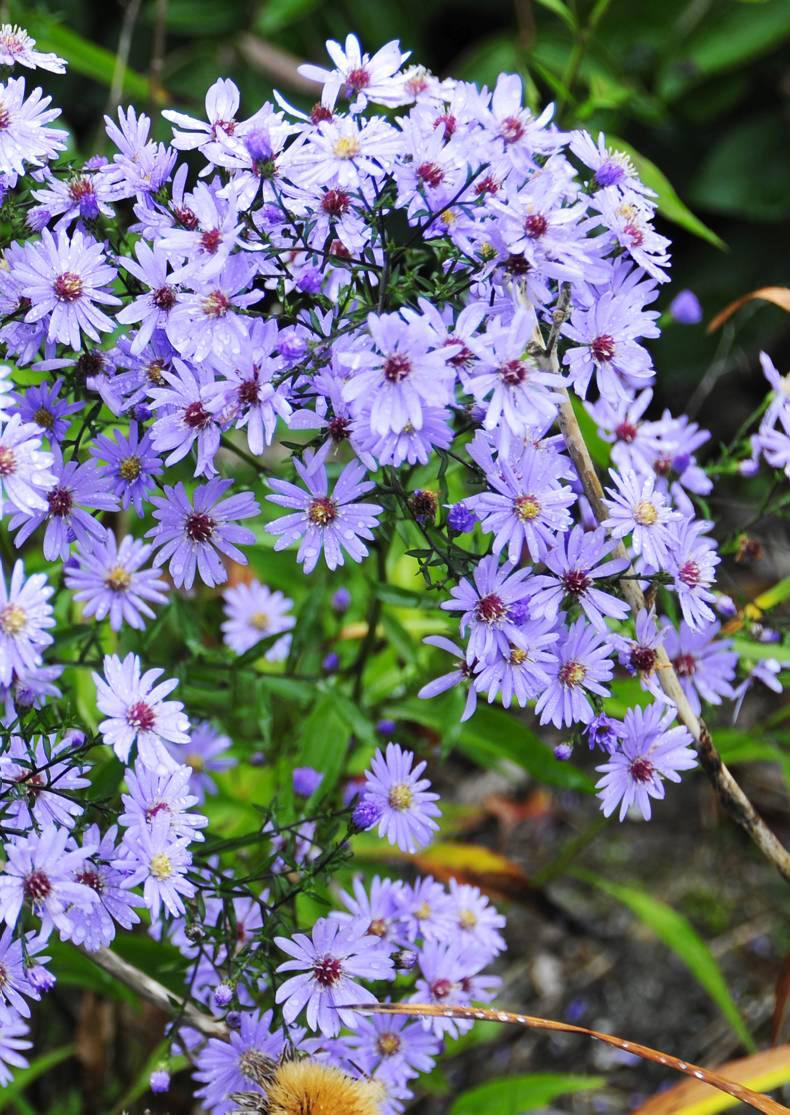 By offering a perfect colour complement, it makes grasses so much more interesting. At this time of year, grasses are colouring to yellow or beige, some are orange and red-flushed, such as miscanthus, stipa and calamagrostis, and the denim blue of the aster sets them off, enlivening borders that might otherwise look dull. At the same time, the grasses offer great contrast of texture that flatters the aster.