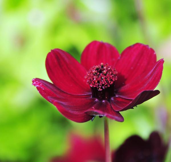 The Ladybird series is popular and can be bought in red-only or yellow-only. The yellow is sometimes offered as a mix with the pink sort, but this is not attractive, the colours mixed do not really work, partly because the yellow flower is not quite as saucer-shaped. Apart from the two annual species, there is the intriguing chocolate cosmos, (shown), so called because of its scent of warm chocolate from the flowers, and the deep chocolate-red colour of the flower petals. This is a perennial with tuberous roots, quite like dahlia, to which it is related.
