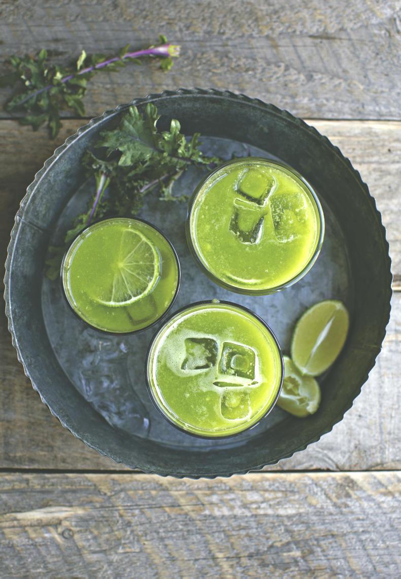 The beetroot recipe has a distinctly “soily” taste to it, so here I have added plenty of sweet fruit, which makes this juice all the more palatable. My third recipe is a very refreshing, tangy combination. Kale is loaded with vitamins (especially A and C) and minerals. Adding the pineapple, lime and coconut makes this juice even more delicious. So let’s all try to make our resolutions last another week.