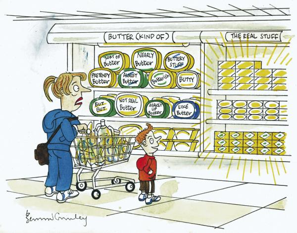 Irish consumers are being bombarded with a vast array of spreadable fat products which are using the word “butter” on their labels despite the fact that they contain over 99% non-dairy ingredients.