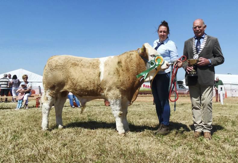 The first prize winning Simmental cow Clonagh Willow clinched the overall beef animal championship and the Dan Joe O’Regan perpetual cup at Belgooly show, Co Cork. Brought out by local breeder Adrian Bateman, this October 2008 cow is sired by Hochenhaule Maverick and was originally bred by Garreth Behan.