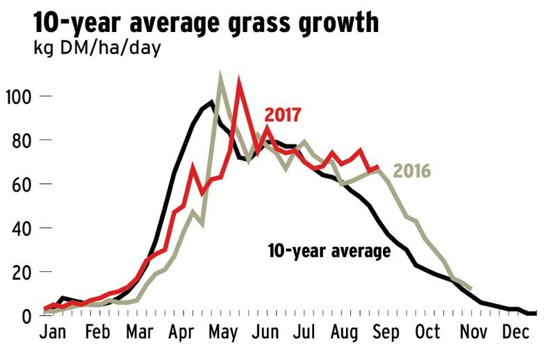 The plan is to blanket-spread the whole farm with muriate of potash in late September. Rotation length is 32 days. The farm has grown 12.24t/ha to date so we should finish up with close to 15t/ha grown by the end of the year.