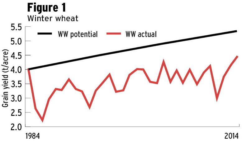 This has become increasingly apparent over the past 15 years as our average winter wheat yields were going backwards and spring barley was just about holding still. Only an exceptional year bucked this trend in our national average yields (see Figures 1 and 2). The gap between potential yield and the actual achievement is clear and indicates that something is missing in our production systems that is holding back progress with yields.