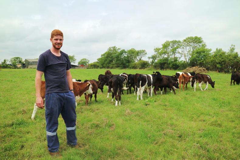 This year’s calves are a mixture of early-maturing (Hereford/Angus) and Holstein genetics. On 26 June, they weighed 117kg and had achieved 0.71kg of daily weight gain from birth. They came from a cousin’s farm and Cathal paid €200 and €120 for early-maturing and Holstein-Friesian bulls respectively. There are a number of early-maturing heifers in the group and these cost €160.