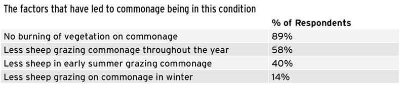 When asked about the changes in their hill commonage over the past 15 years, almost all of the farmers (93%) said that the amount of heather had increased, while 63% said bracken cover had increased and 22% felt that the proportion of grassland had decreased.