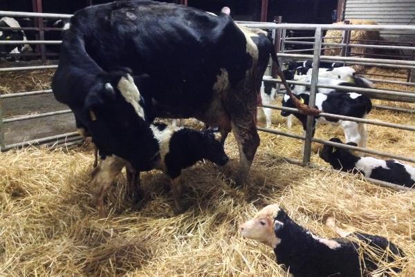 At 12.30am this morning the cow, a three-year-old second calver, gave birth to a Hereford bull and a Friesian heifer with minimal assistance.