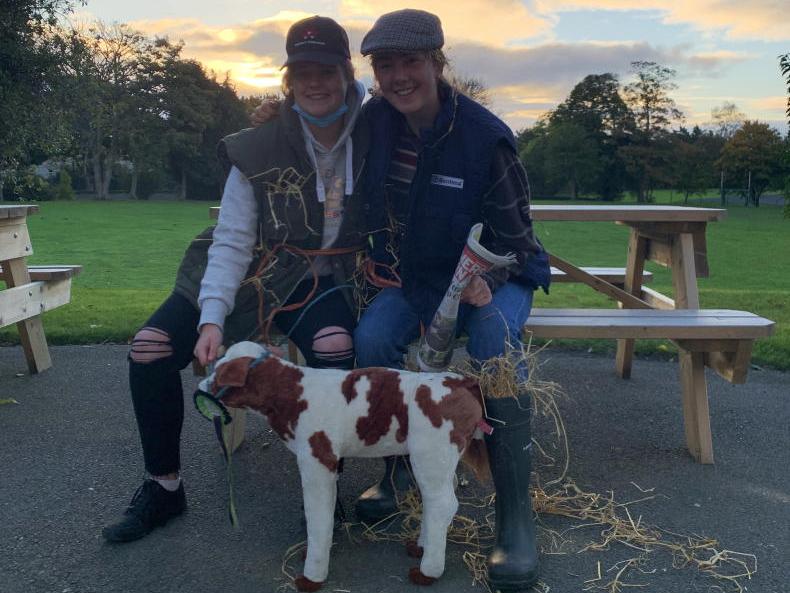 Tick-or-treat: Holly and Lizzie dressed up as their fathers, Stephen Arthur (IFA national dairy committee chair) and Sylvester Bourke for Halloween in school. They attend St Mary's College, Arklow, Co Wicklow. \ Elizabeth Bourke