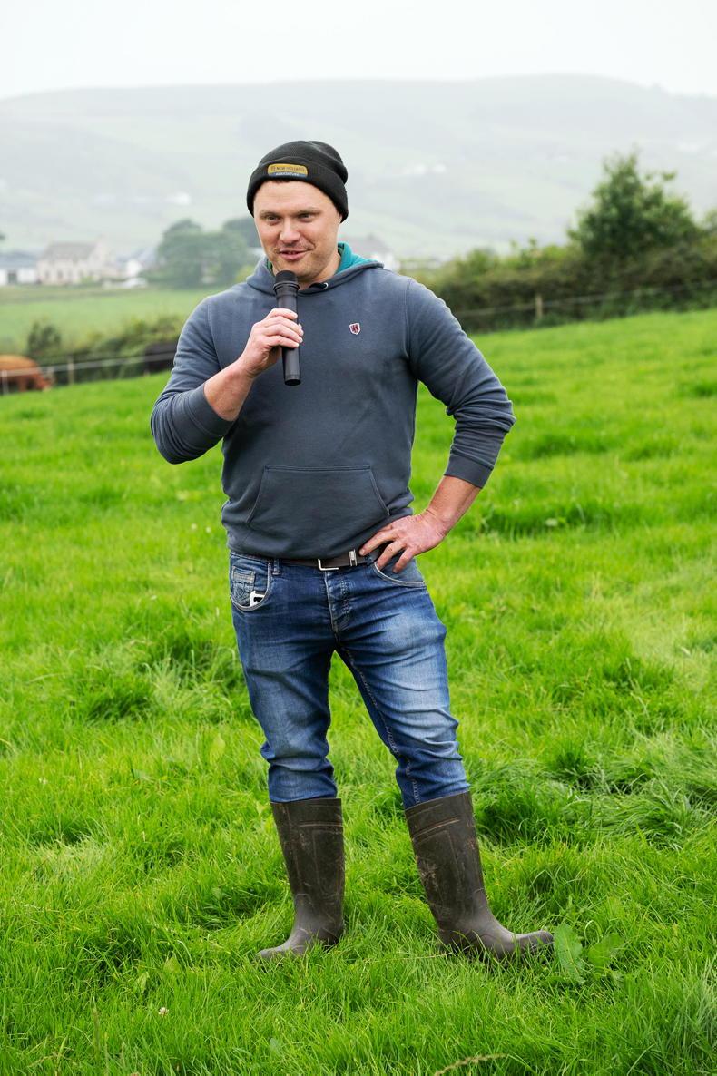 Thomas Hutchinson speaking at the Teagasc Beef & Suckler Farm Walk on his farm outside, Moville. Photo Clive Wasson