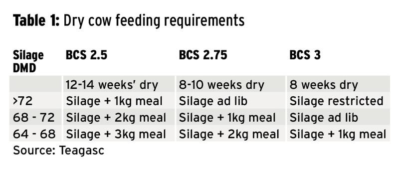 Silage quality on farms appears pretty good in general, but get it tested to be sure. The table below shows how long cows need to be dry depending on their BCS and silage quality.