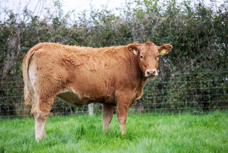 Lot 817: A very sweet Knockmoyle 10 Loki ET heifer. She is due to calve on 23rd March to the Salers bull. She goes back to a super Limousin cow that has bred some great cattle on Tullamore Farm
