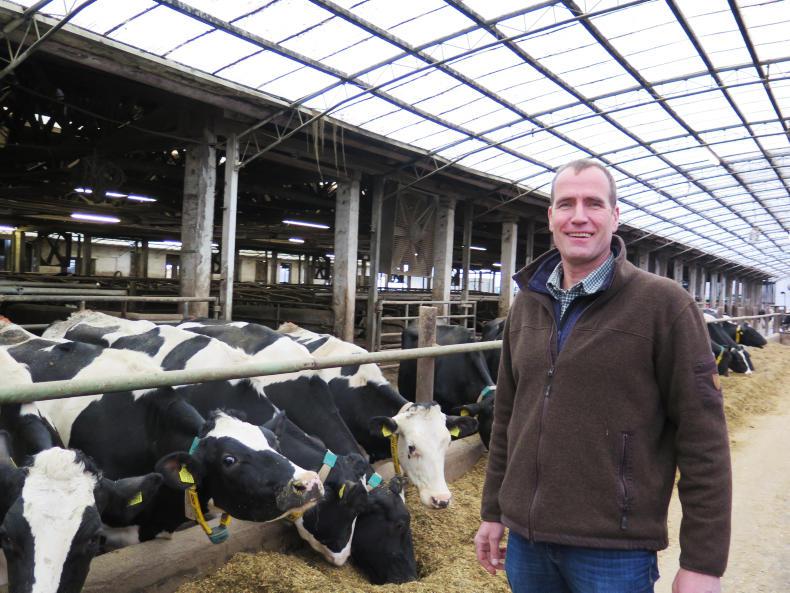 The Holstein Friesian cows are milked through a 20-unit double-up parlour three times a day. The parlour, and a 320-cow state-of-the-art cubicle shed, were built in 2013 at a cost of €3m.
