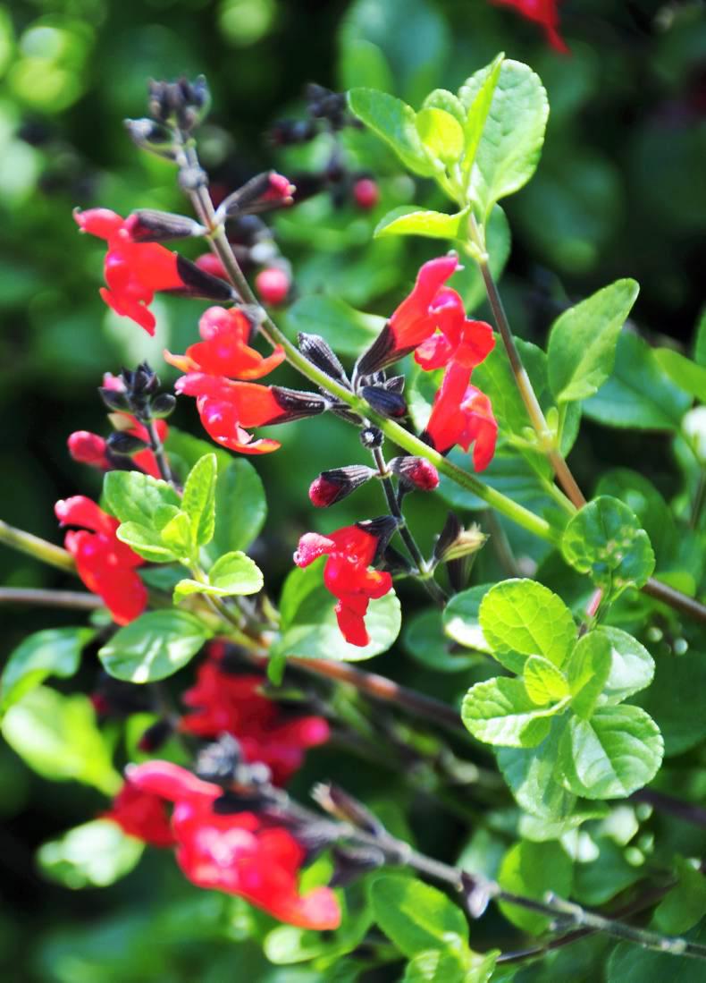 Salvia is a huge family of flowering plants, from the blazing red salvia used as summer bedding to the ordinary herb sage. Many are non-woody, herbaceous plants and quite a few are somewhat woody – at least at the base of the plant. Those kinds are shrubs woody enough not to die back in winter. Although the wood is soft and the stems tend to be brittle, the shrubby species are more like shrubs than perennial flowers.