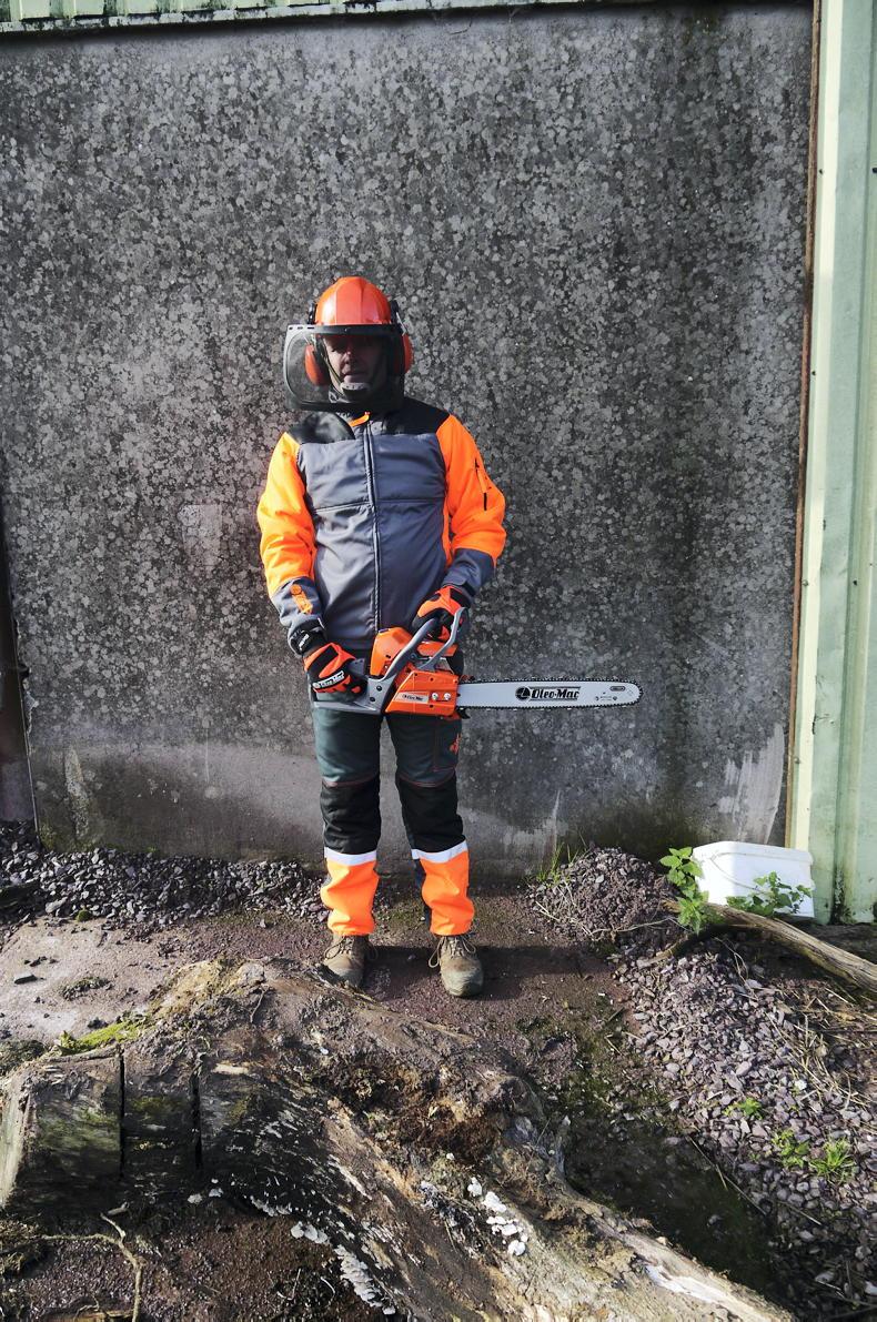 Check that all guards are intact. A simple rule when operating a chainsaw is gear up before you go near the saw. The correct personal protective equipment (PPE) needs to be worn at all times when the saw is in operation. This includes safety helmet with a faceguard, earmuffs, gloves, chainsaw trousers and safety steel-toe boots. A quality set of the above will cost in the region of €180 to €200. If minded, it will last for many years and has the potential to save enormous medical fees in the event of an accident.