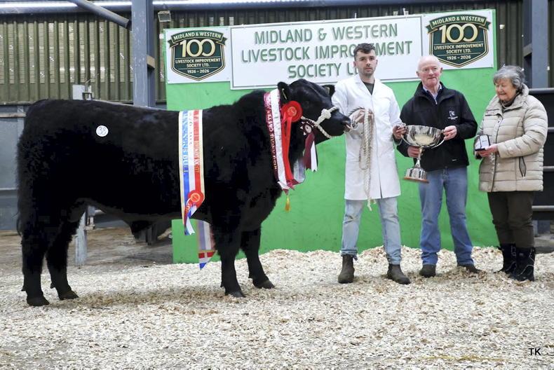 Leitrim breeder Joe McEllin was in the hot seat when he received a call of €6,500 for his 13-month-old bull, Mohill Black Lightning. Sired by the UK powerhouse Rawburn Boss Hogg, this high-index young bull is out of a Stouphill Bomber-bred cow. Purchasing him for their pedigree and commercial herd in Co Westmeath was the Holloway family.