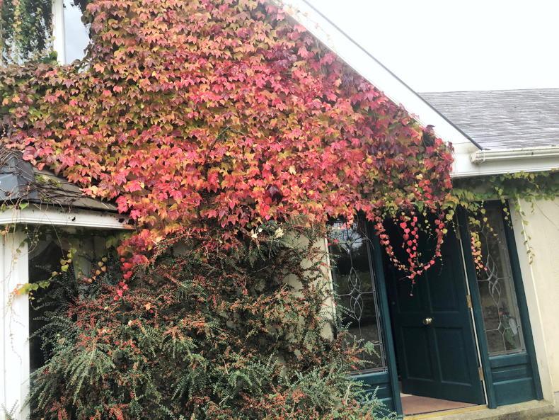 Boston ivy turning red while cotoneaster produces plenty of seeds for the birds.